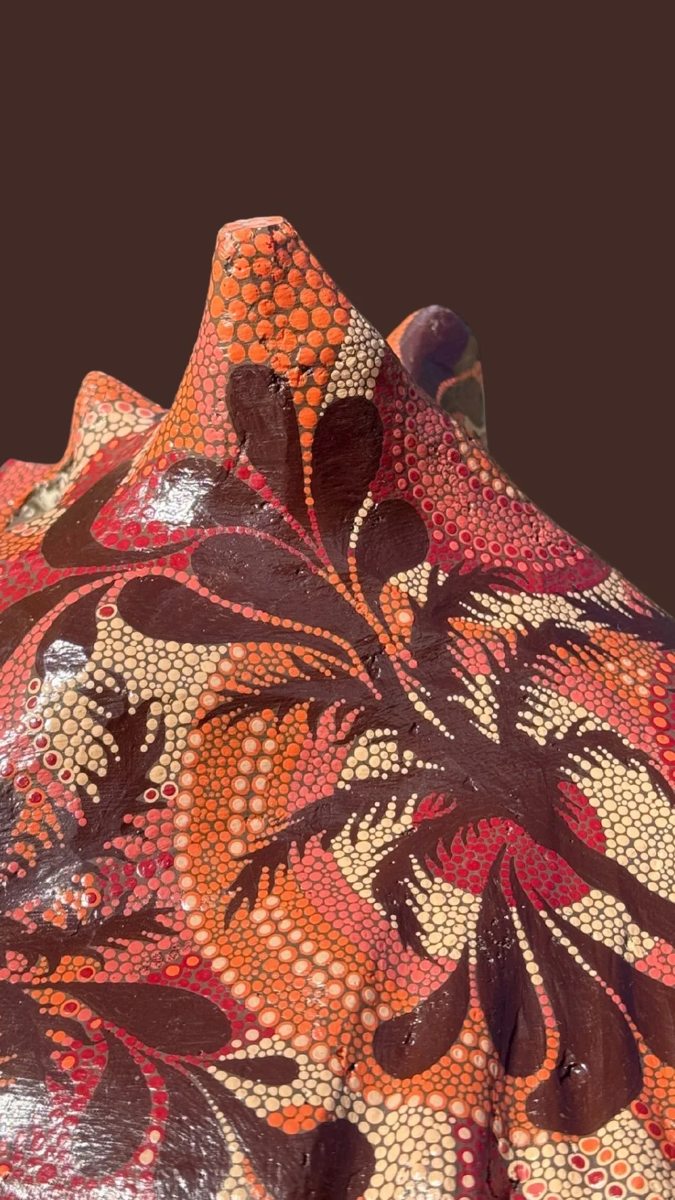 Malia Kinger (b. 2003, Nassau, Bahamas) is a Bahamian mixed-media artist who paints mostly using dots, inspired by mandalas and stippling techniques. Her work blends patience, rhythm, and detailed pattern work across a range of natural surfaces, like wood and conch shells, drawing from the colors, textures, and natural beauty of the islands.