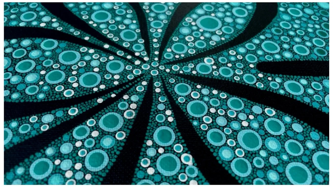I’ve always been fascinated by sand dollars, their delicate, fragile shells shaped over time by the sea. They symbolize quiet resilience and completeness, much like the dot work itself: countless tiny marks that might seem small alone but together form a unified whole.I chose a colorful palette to reflect both diversity and harmony. Each color stands on its own yet blends into a balanced, vibrant composition. This interplay of color and form honors the beauty of variation and connection, just as a sand dollar is naturally shaped by many forces coming together.