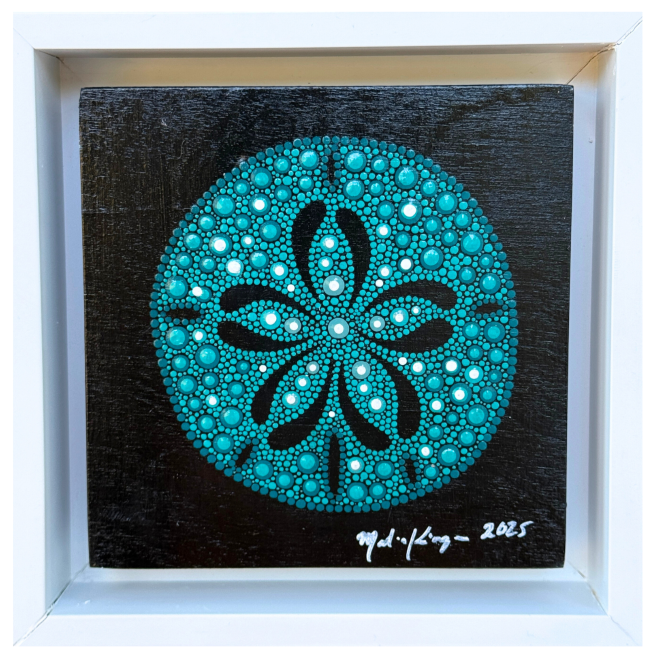 Like an earlier piece “Three Gulls,” this work was created using a series of four smaller wooden panels, arranged to form one cohesive image.